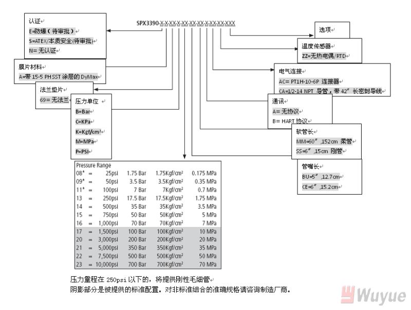 輸出,模擬:4-20mA(標(biāo)準(zhǔn)壓力,溫度可選) 輸出,數(shù)字:HART 綜合精度 (錯(cuò)誤)(20-100%滿量程): ±0.15%滿量程(3M和3M以上) ±0.25%滿量程(1.5M和1.5以下) 溫度漂移(77-572℉,25-300℃): 0.001%滿量程/℉,最大(0.001%滿量程/℃,最大) 重復(fù)性:±0.1%滿量程 爆破額定壓力:2X滿量程 超壓 額定:1.5X滿量程 量程:750至10,000psi 可調(diào)范圍:6:1調(diào)節(jié)比,向下 負(fù)載電阻:250歐姆@18Vdc;500歐姆@23Vdc |